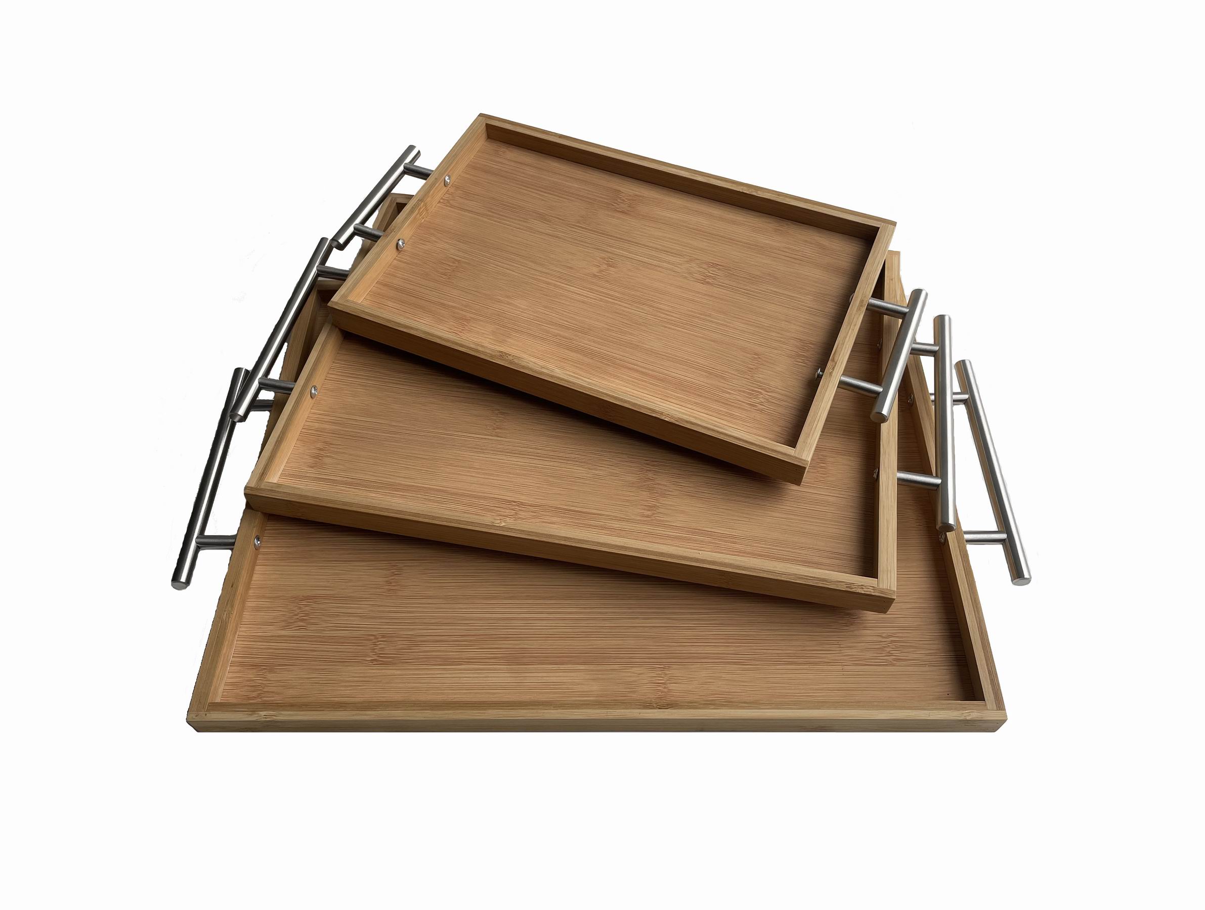 Set 3 Bamboo Tray With Handle